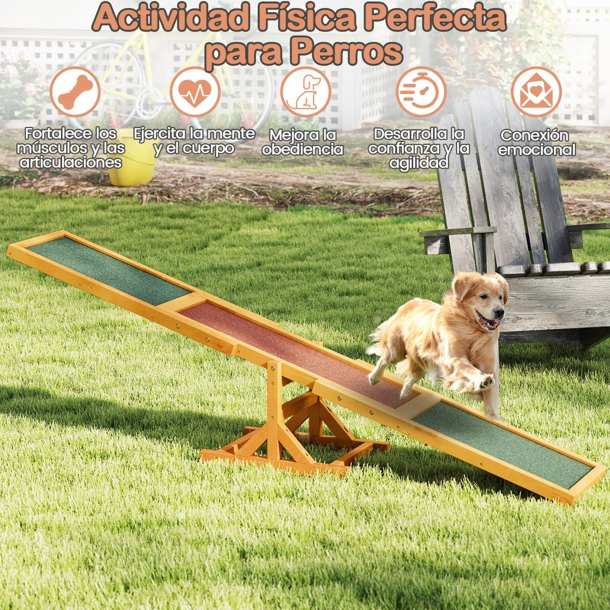 Versatilidad: Es adecuado para perros de varios tamaños (pequeño, mediano o grande). Gracias a los materiales resistentes a la intemperie, este balancín se puede usar en exteriores (patios y céspedes) y en interiores como centro de juegos.