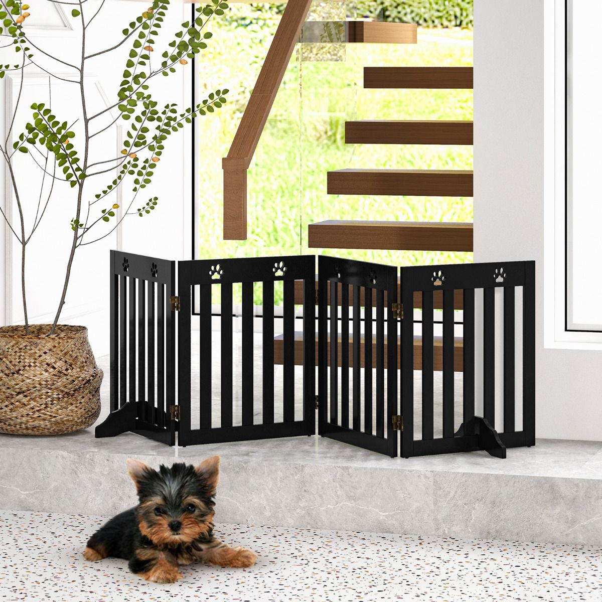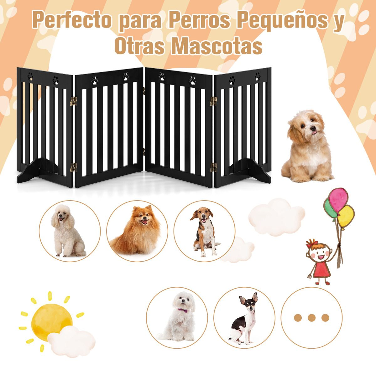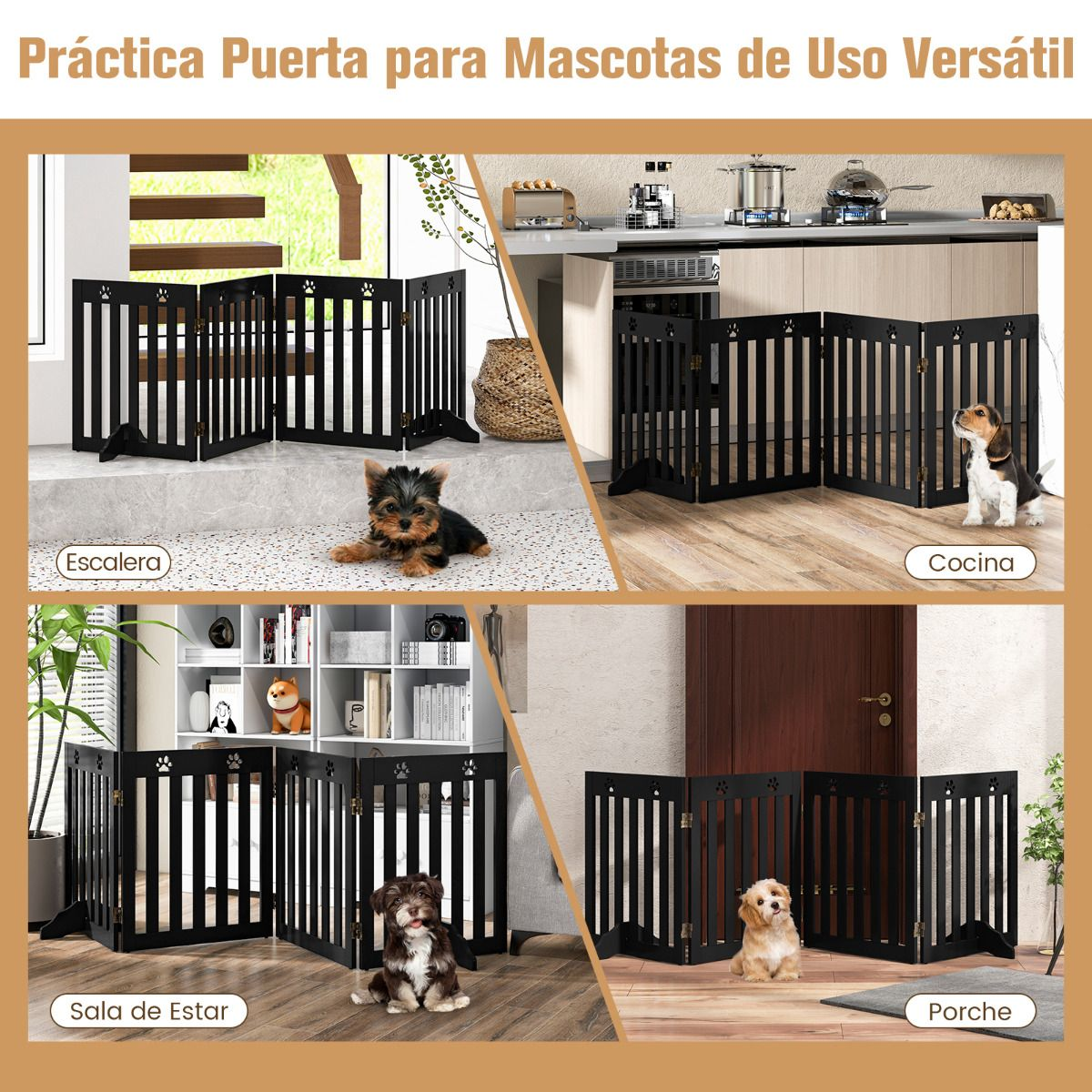Para garantizar la seguridad de tus amigos de cuatro patas, esta verja ofrece un espacio seguro para ellos y no se tiene que fijar a la pared.
