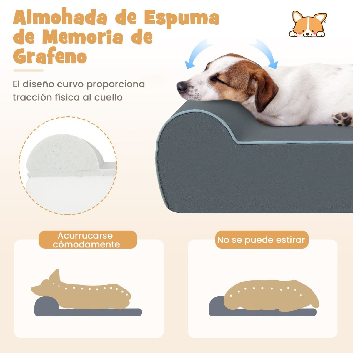 Cama Suave y Elástica: El interior está relleno con espuma viscoelástica de grafeno y esponja de alta densidad, brindando soporte a la columna vertebral de los perros y ayudando a proteger su salud.