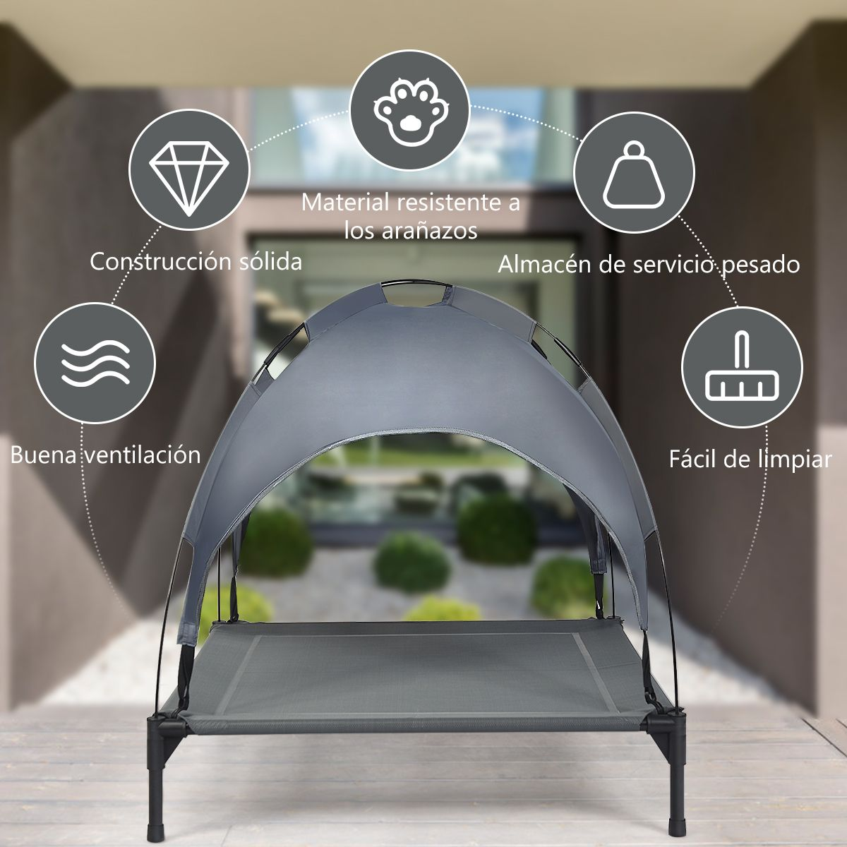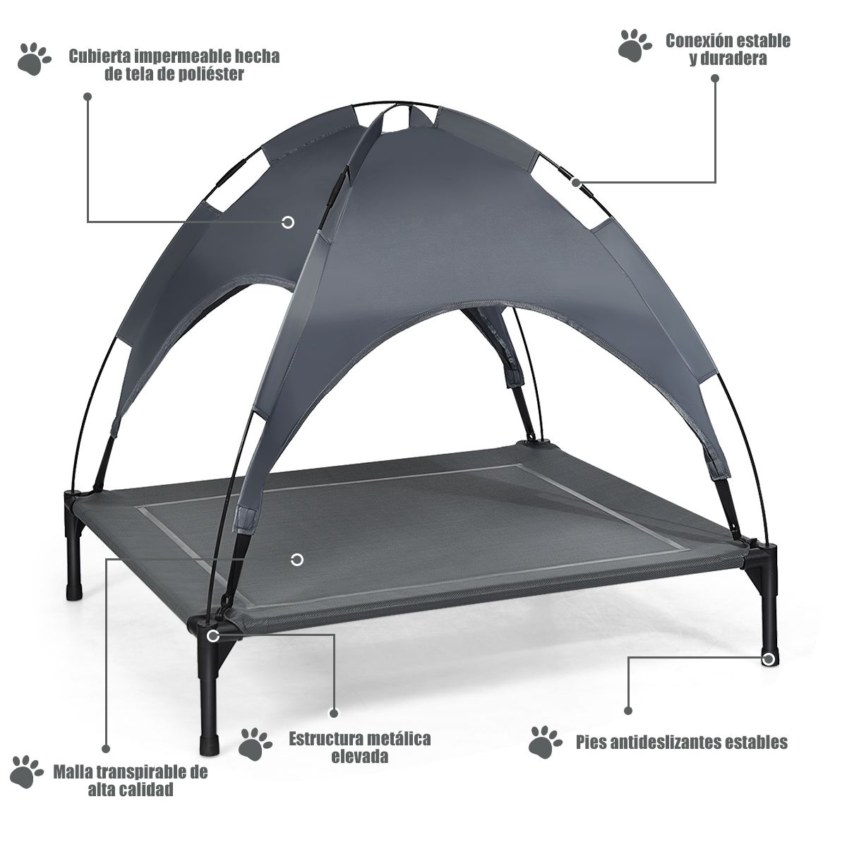 Nuestra cama para perros otorga un lugar cómodo para las mascotas y las ayuda a quedarse frescas en verano. Con el diseño elevado, ayuda la circulación del aire y evita que el perro se acueste en el suelo.