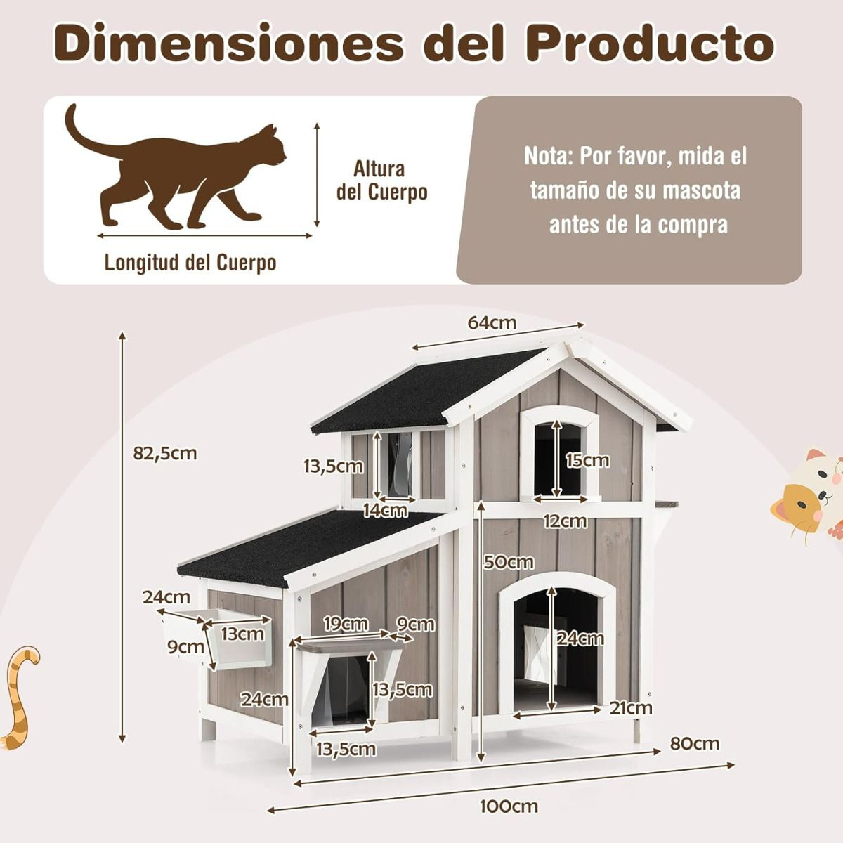 ¡Brinde un refugio privado y cálido a su adorable mascota! Nuestra casa para gatos de exterior mide 100 x 64 x 82,5 cm (L x AN x AL), proporcionando un centro de actividades divertido para que los gatos descansen, jueguen, suban o coman. Es ideal para gatos, conejos u otras mascotas pequeñas.