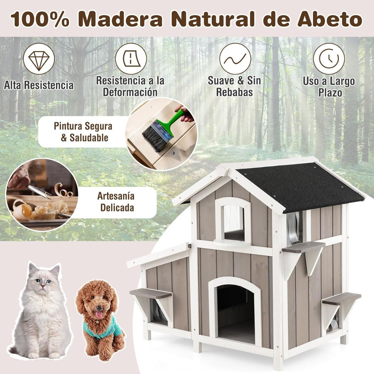 Estructura Sólida y Duradera: El refugio para gatos está hecho de madera de abeto natural con una pintura segura y saludable, lo que garantiza buena robustez y durabilidad a largo plazo. A través de un tratamiento de pulido delicado, la superficie es lisa y libre de astillas.