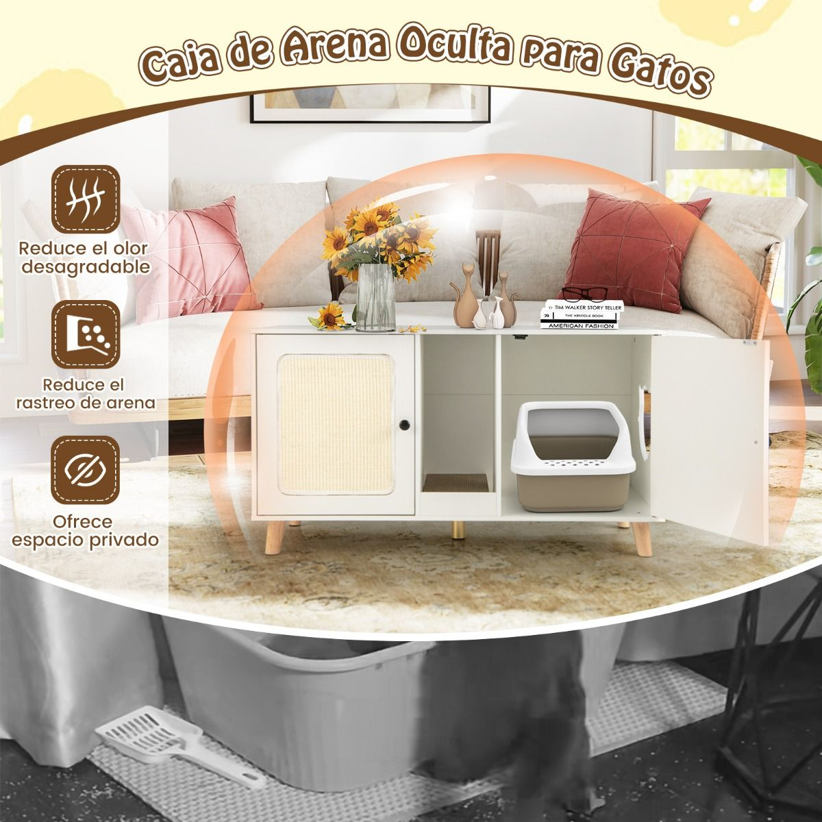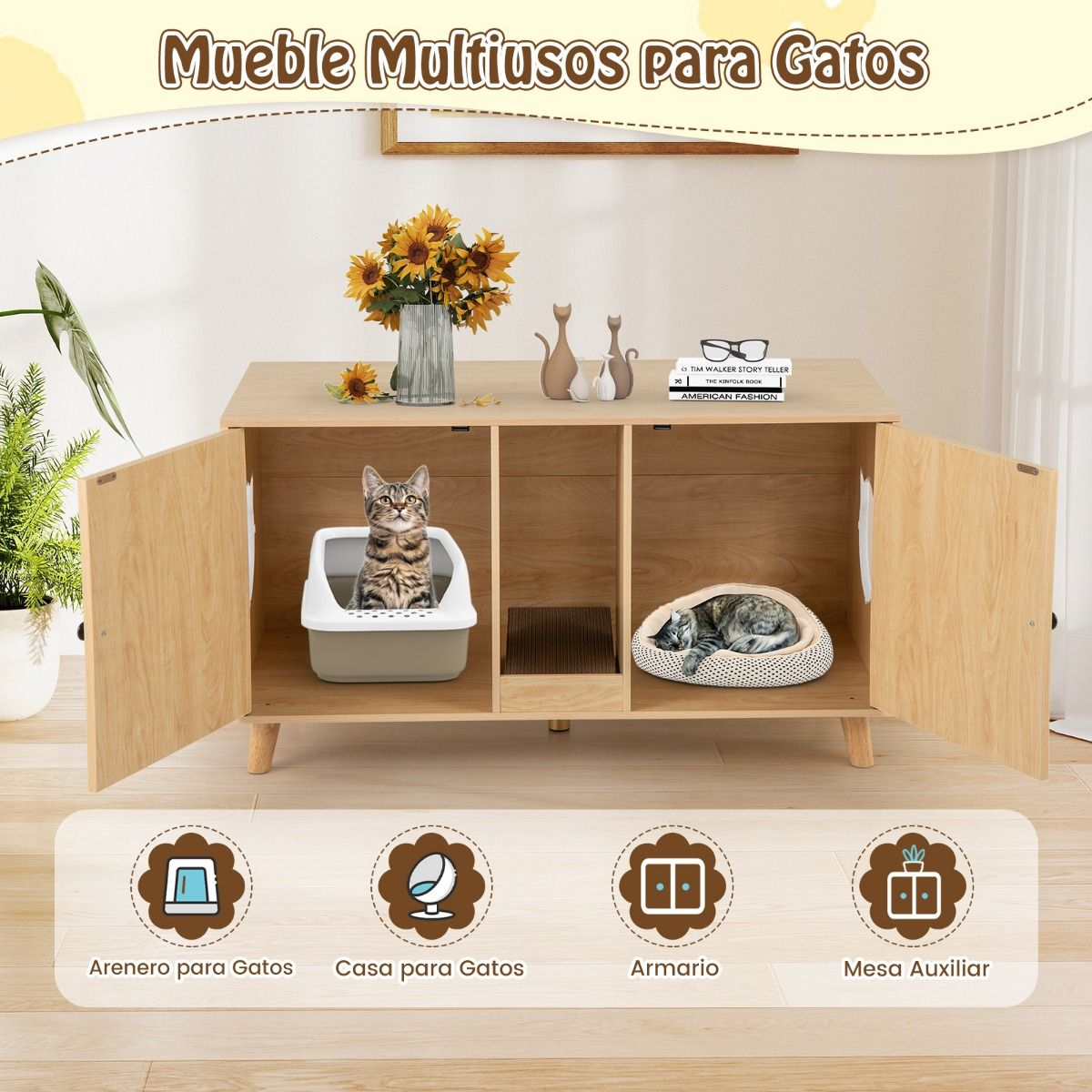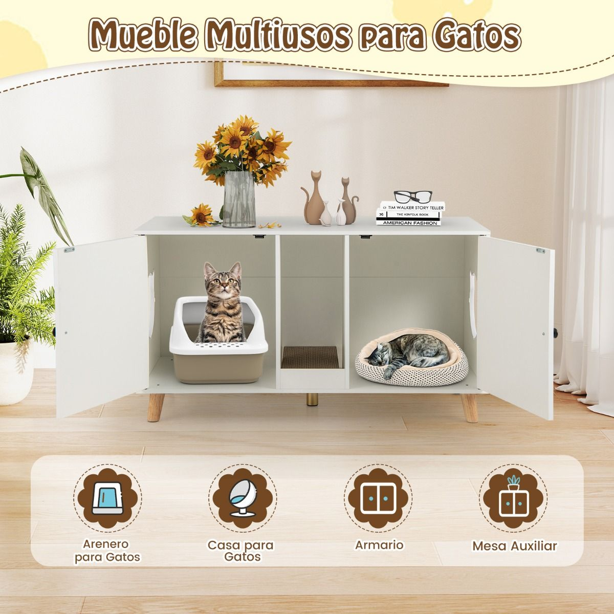 Sirve como un gabinete para caja de arena, mesa auxiliar elegante y casa para gatos.