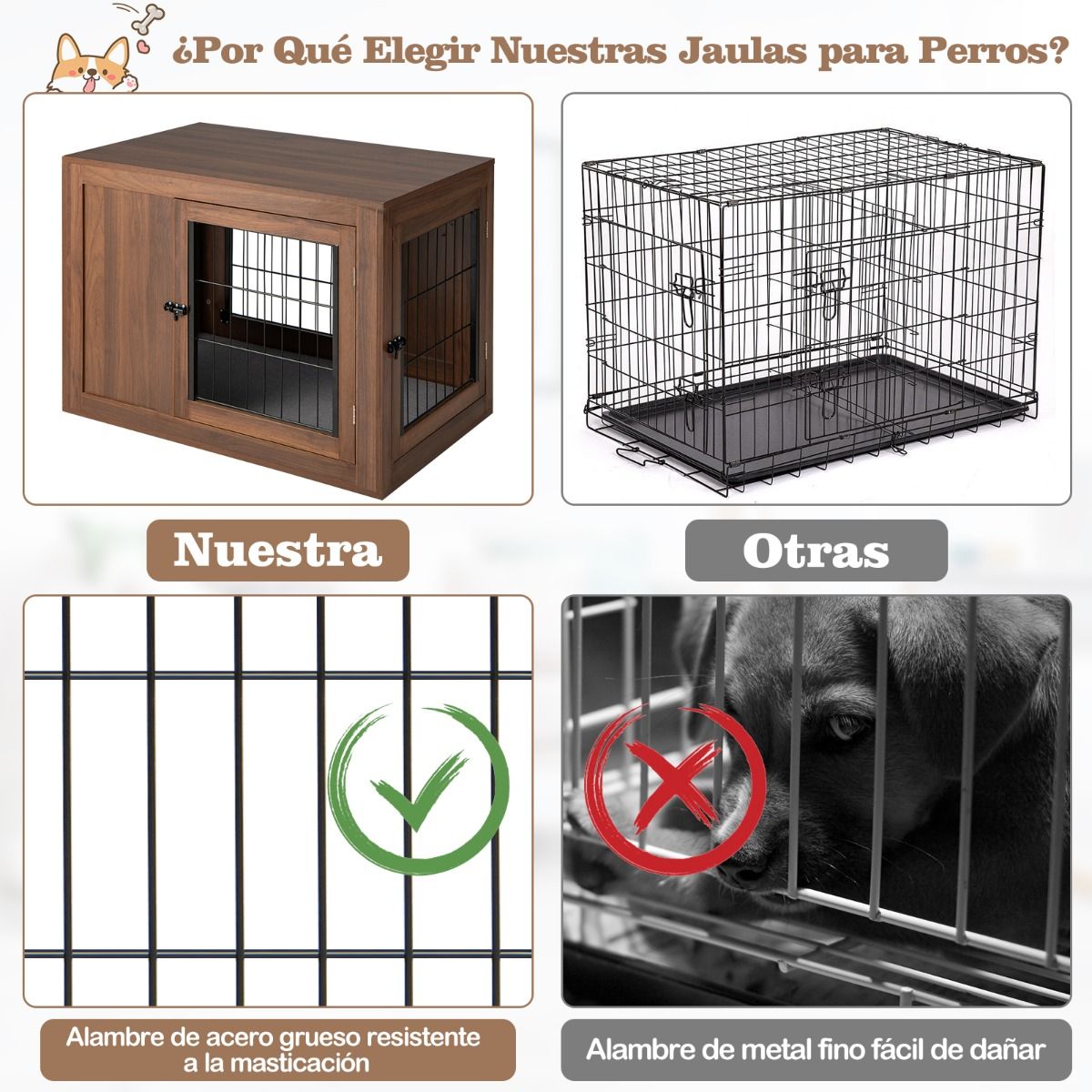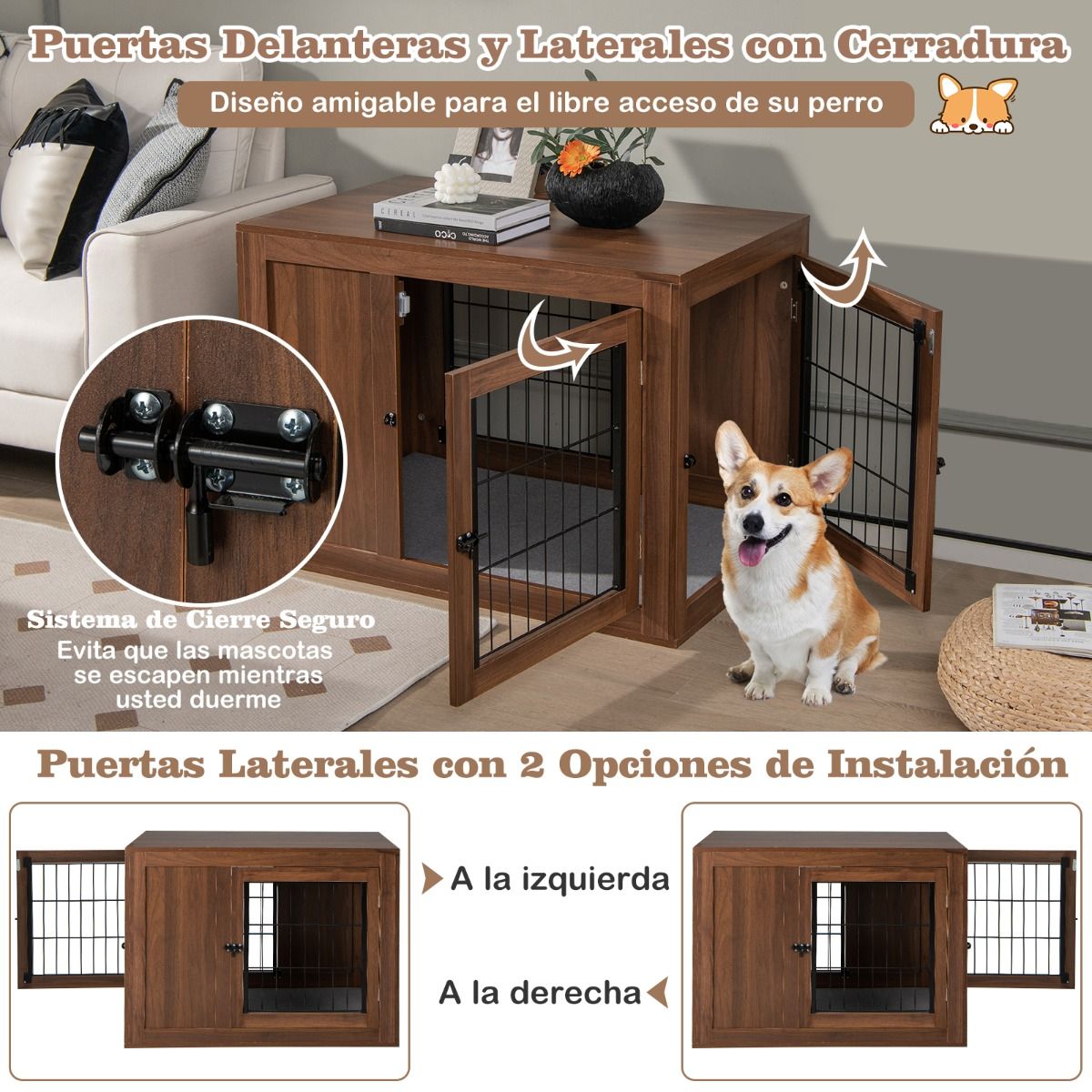 • Diseño 2 en 1: Lo convierte en una jaula para perros y una práctica mesa auxiliar o mesita de noche.